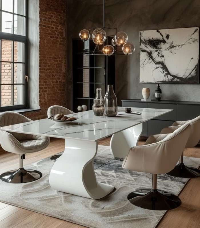 Der Designer Esstisch „Burano“ steht als Sinnbild für Eleganz und modernes Design. Inspiriert von der klaren Linienführung und der Schönheit italienischer Designtradition, verkörpert dieser Tisch eine Mischung aus Funktionalität und ästhetischer Raffinesse. Der Name „Burano“ ist eine Hommage an die gleichnamige venezianische Insel, bekannt für ihre lebendigen Farben und das handwerkliche Geschick ihrer Bewohner, was sich in der sorgfältigen Verarbeitung und im Detailreichtum des Tisches widerspiegelt.